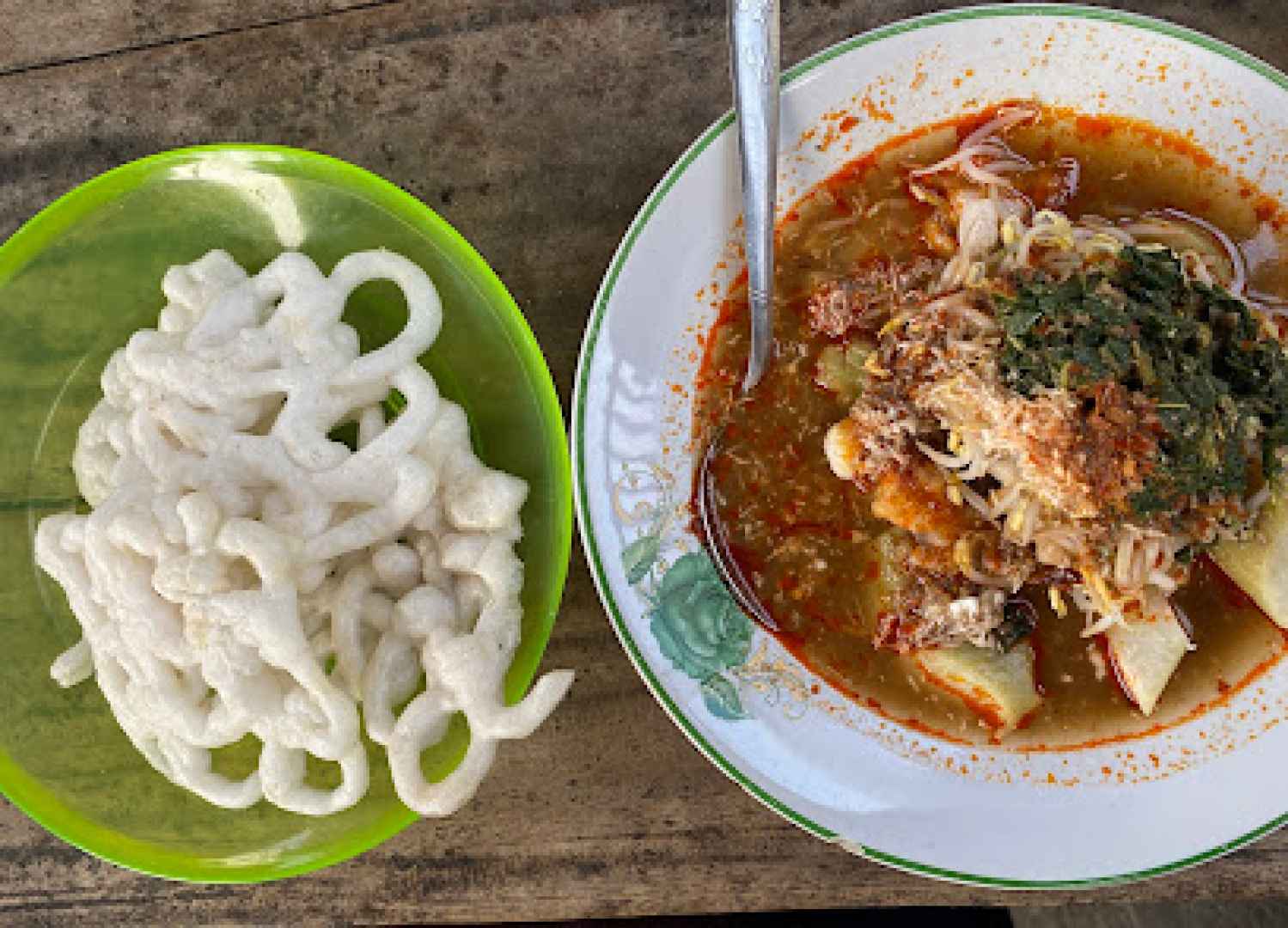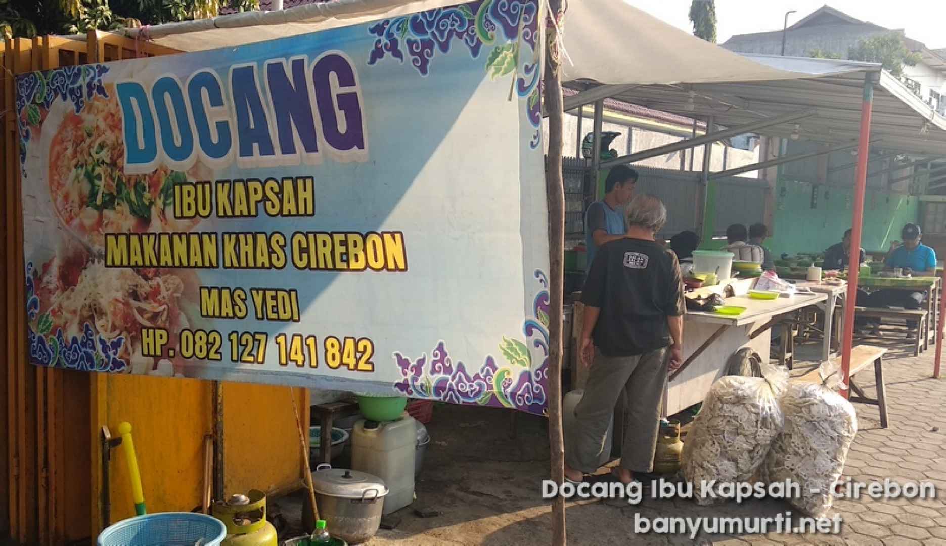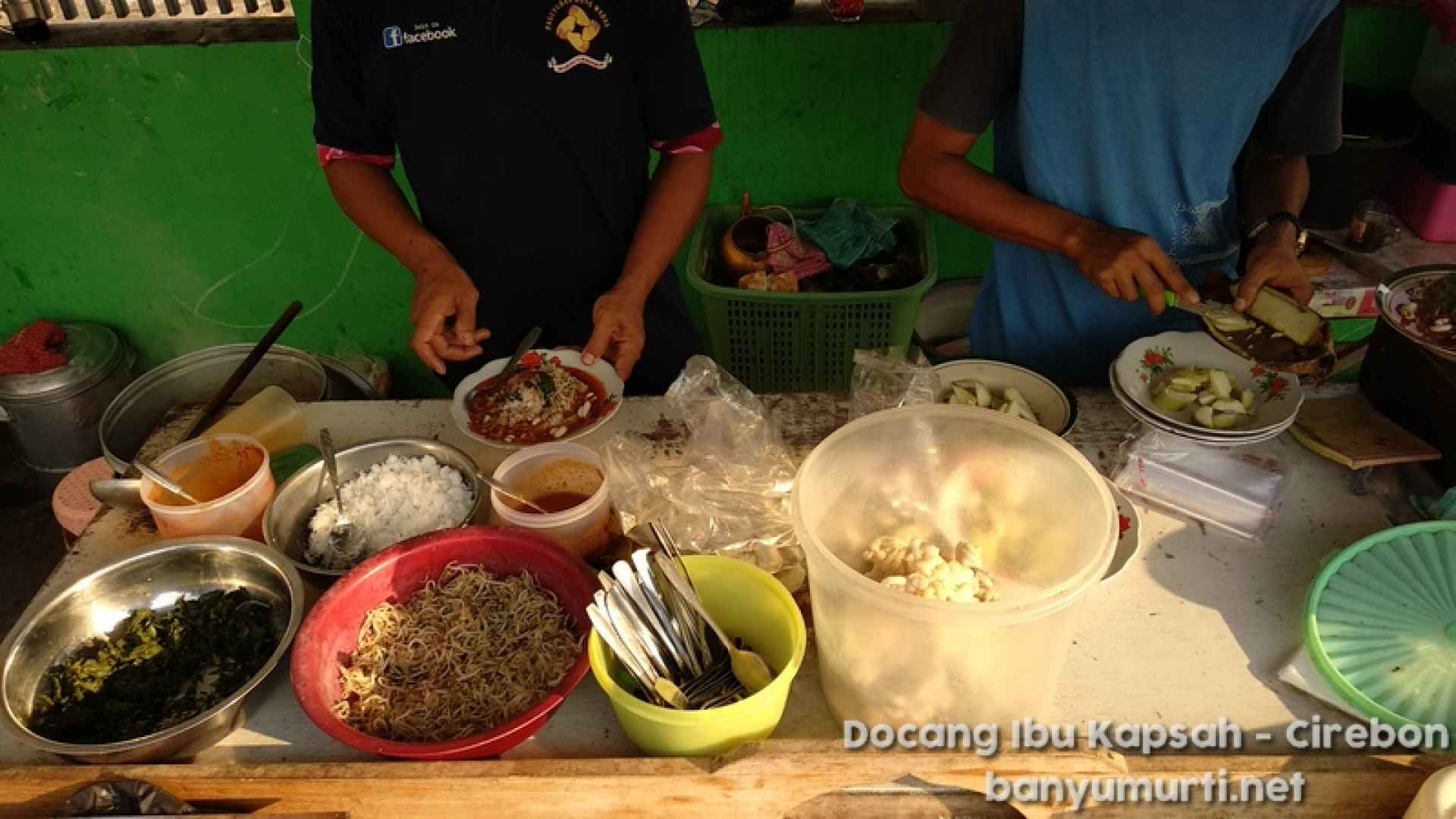 Docang Ibu Kapsah adalah hidangan tradisional khas Cirebon yang menggugah selera, terdiri dari campuran daun singkong, toge, lontong, dan parutan kelapakuah oncom yang hangat dan gurih, disiram dengan kuah oncom yang hangat dan gurih. Hidangan sederhana namun kaya rasa ini cocok untuk sarapan atau santap ringan dengan cita rasa yang autentik dan khas.