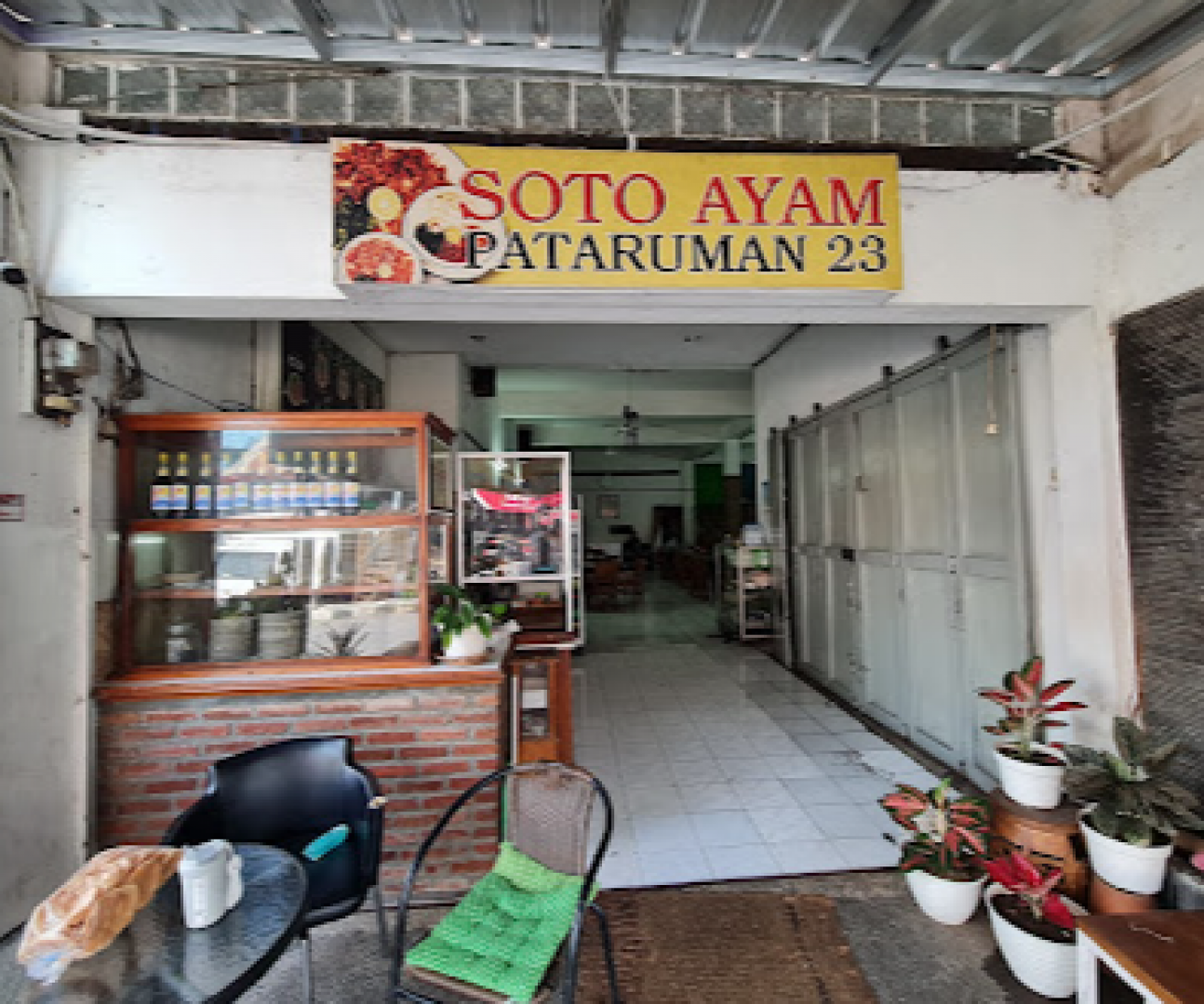 Dalam seporsi Soto Ayam Pataruman, Anda akan menemukan suwiran daging ayam kampung, ati ampela, telur, ceker, dan kepala ayam, serta tambahan kedelai goreng, irisan daun bawang, bawang goreng, dan jeruk nipis. Tempat ini buka setiap hari mulai pukul 06:00 hingga 20:00 WIB.